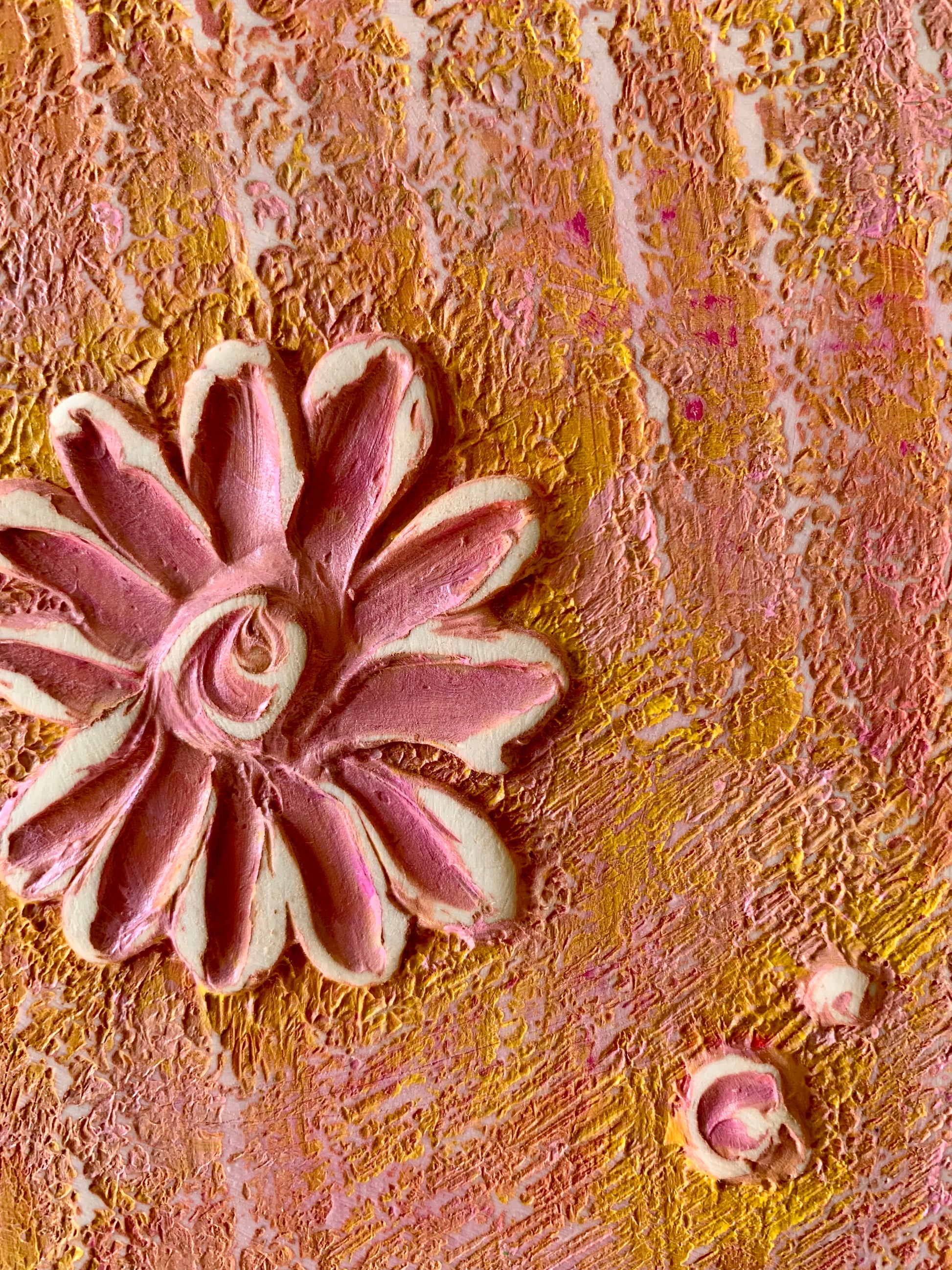 POLISHED DAISY (2025) 6" x 6" x 1.5" acrylic and texture medium on wood