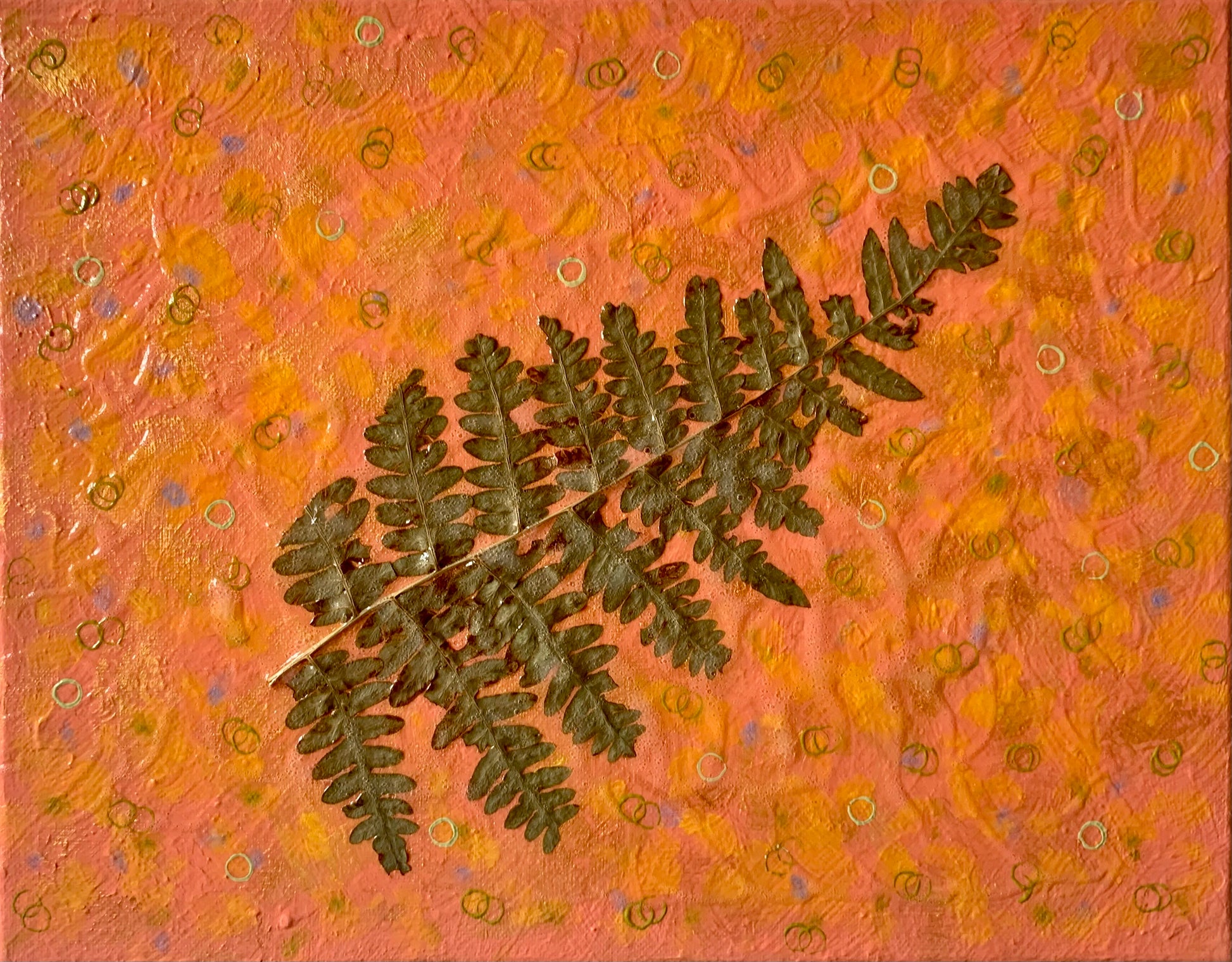 PRESSED FERN (2025) 11" X 14" acrylic and dried fern on canvas, wired